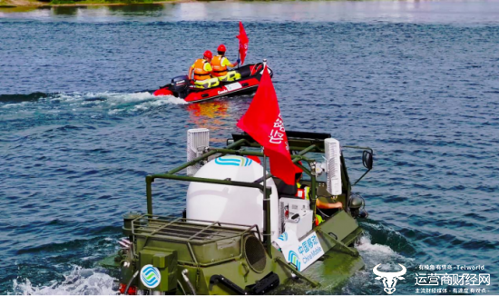 江水中,5G-A通感一体基站正在实时监测江面上的船只、人员等装备物资情况;陆地上,水陆两栖全地形车、“动中通卫星通信车”、便携式卫星基站冲锋在前;天空中,无人机不仅能充当“空中基站”,还能协助应急通信保障人员完成跨河光缆的布放……