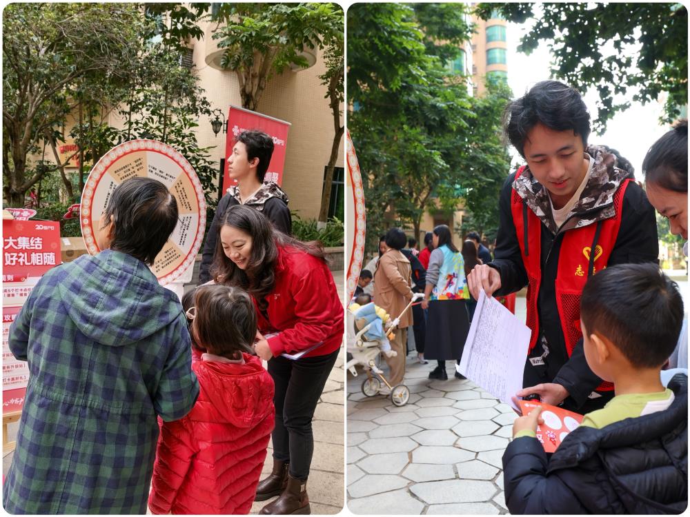 在宝安区鸿德园小区,深圳联通以“新春集福送暖”为核心,打造沉浸式游园体验。活动现场设置五大互动打卡点,市民通过完成心愿投递、反诈知识挑战、投“福”游戏等任务,集齐“希望福”“平安福”“收获福”“敬业福”“分享福”五枚福印(谐音“福音”),兑换精美礼品,让每一份参与都有收获。
