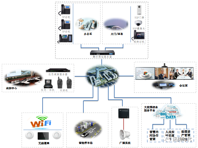 在智慧园区领域,IP融合通信解决方案可以实现园区内外的全业务融合通信,支持园区管理部门进行日常管理、安全监控、应急处理等多种业务,提高园区的运营效率和服务水平。例如,在园区内发生火灾时,园区管理部门可以通过IP融合通信平台,实时查看火灾现场的视频监控,与消防部门和保安人员进行语音和视频调度,与周边单位和居民进行广播通知和疏散指导,及时控制火势和减少损失。